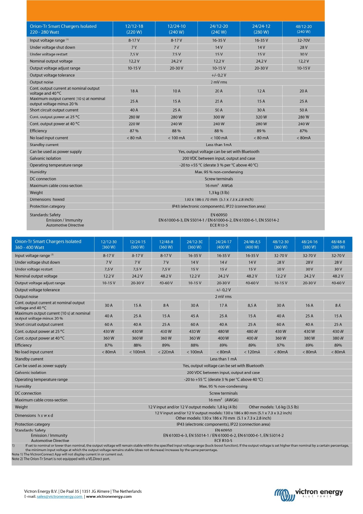 The Victron Orion-Tr Smart 12/48-8A (380W) Isolated DC-DC Charger offers a high-efficiency solution for charging 48V battery systems from a 12V source with galvanic isolation to prevent ground loops and ensure safe, stable operation. Equipped with Bluetooth connectivity, it allows remote configuration, monitoring, and firmware updates via the VictronConnect app. Featuring adaptive three-stage charging—bulk, absorption, and float—it optimizes battery health and longevity. Its adjustable output voltage provides flexibility to suit specific battery needs, while the 380W power capacity delivers a consistent 8A charge. Multiple units can be paralleled to support larger battery banks, making it ideal for off-grid, marine, and vehicle applications.